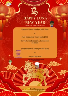 There will be a themed lunch on Thursday 12th February 2026. The theme for the day is Luna New Year 🎉🐎 Please find the menu below...